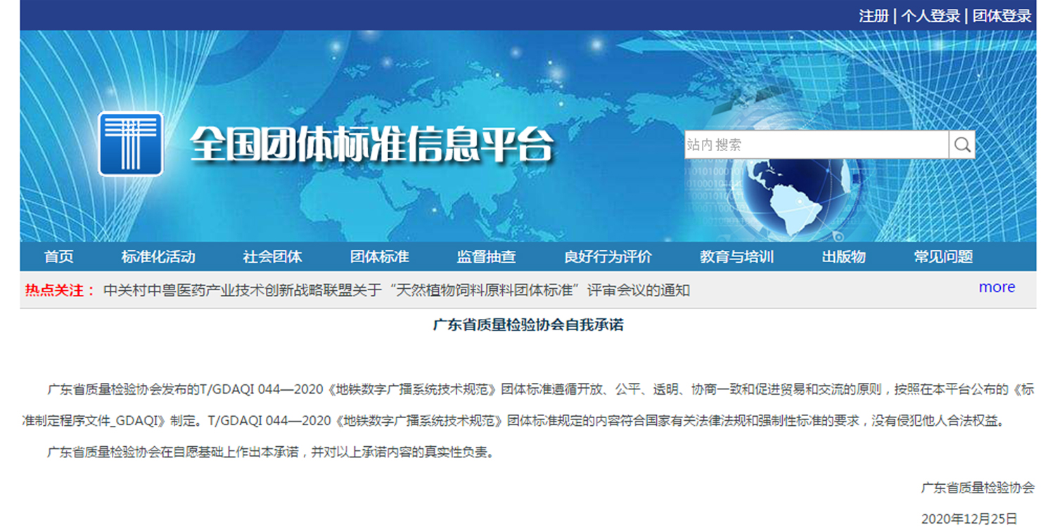 In 2020, the group standard of "Technical Specifications for Metro Digital Broadcasting System" edited by itc was successfully announced on the national group standard information platform, which provided a guiding role for further improving the quality of subway services.
