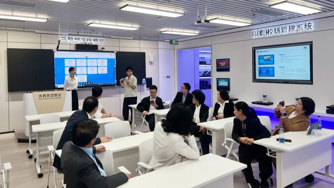 he delegation toured the itc Smart Exhibition Hall, gaining insights into itc audiovisual systems, practical experience, achievements, and innovations in the education sector. They paid special attention to the campus visual management system, smart meeting rooms, audiovisual and lighting control experience zones, and smart classroom experience zones.